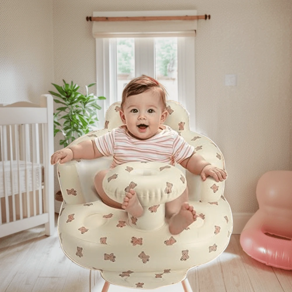 Give your baby the perfect support during playtime or feeding. This inflatable seat is soft, secure, and designed for comfort — helping your little one sit up safely while exploring their world.